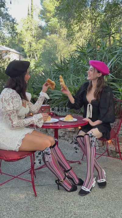Whether you’re café hopping in a lace mini or pairing them with a flirty black dress and beret, these socks bring instant Parisian flair to any outfit.